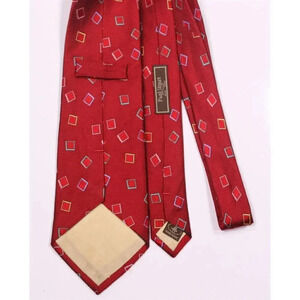 Paul Stuart Red Twill w/ Square Geometric Print Silk Necktie Tie Made in Japan