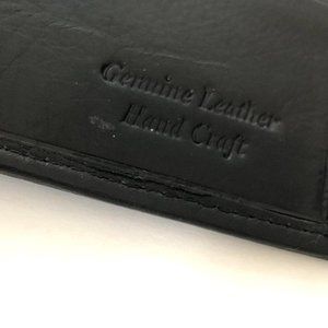 Measures 4 1/4 X 5" folded. Gorgeous soft black leather. Measures 12 1/2 x 5" fully open. Tons of spaces for cards, separate opening for cash. Made in India. Very nice pre-owned condition.