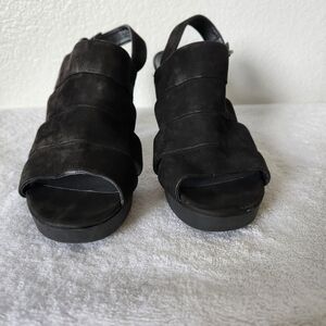 Paul green black cutout chunky suede leather heels