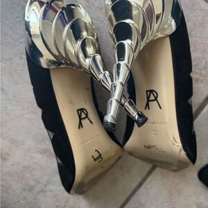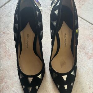 Paul Andrew Chrysler building heels chrome shell layered shoes triangle pumps