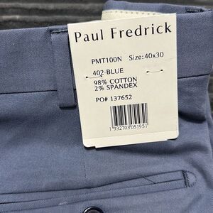 Paul Fredrick Cotton Stretch Twill Pants Blue Men’s 40x30 NWT. 98% Cotton, 2% Spandex.