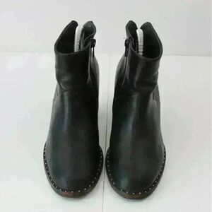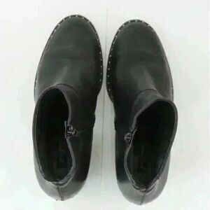 Edgy black leather ankle booties with studded detailing and Paul Green's signature high-quality craftsmanship. Gently worn, cleaned, and disinfected. Note: one small stud is missing on one shoe (pictured), but the boots remain a bold, stylish statement piece.