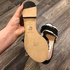 black and white leather fringe.