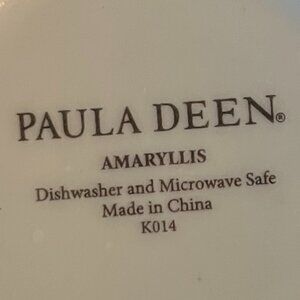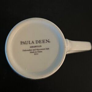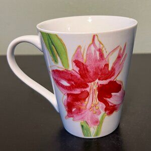 Bring the beauty and serenity of a flower garden to your coffee breaks or tea times with this white ceramic Amaryllis pattern cup from the Paula Deen Collection. Both sides feature a lovely watercolor image of a large Amaryllis flower in hues of mauve pink, red, green and yellow. Stylish and comfortable handle. Dishwasher and microwave safe. Measures 4.25” tall with a 3.5” diameter; 5” across including handle. Holds 11 fluid oz. From Paula Deen.
