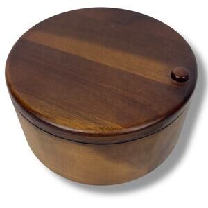 Paula Deen Pantry Ware Signature Wooden Salt Cellar Bowl Box Sliding Lid 5.5"