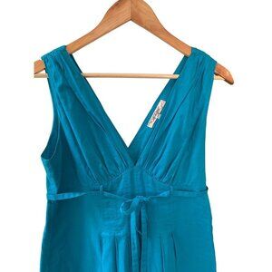 Paula KC Bright Blue Sleeveless Summer Party Deep V-neck Cotton Lined Dress M