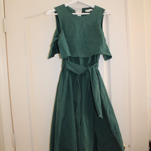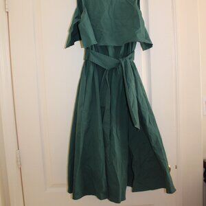 Beautiful, designer Jumper in Forest Green color with belt size 36, dress has a swing vest look from front and back giving a very elegant and smart look. dress it up and wear it for elegant wear or dress it down for casual. A great piece to own and have in the closet. In great condition, (picture shows the dress a bit creased but looks great once starched)