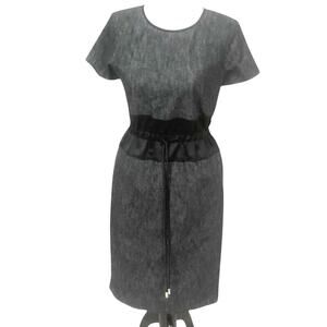 Paula Ka Short Sleeve Cinch Waist Satin Trim Career Dress Black Gray EUC Small