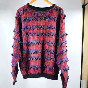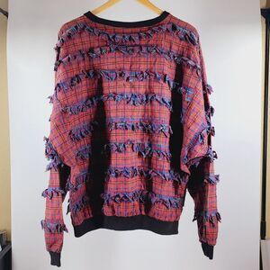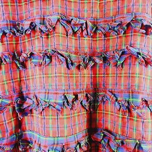 Paula Sweet Muslin Mink Plaid shirt fringe top cotton M