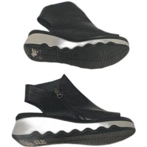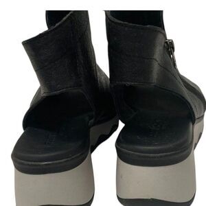 Paula Urban black leather sandals with a platform sole. The shoes are in very good condition. See pictures of the soles, which have some residue from a price tag, which can be removed. The leather still looks great.