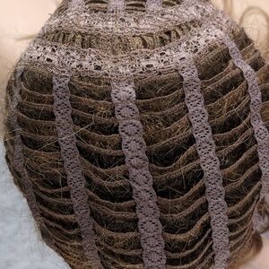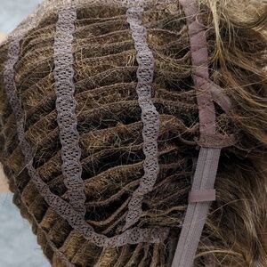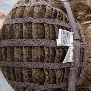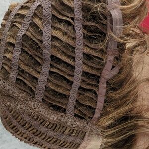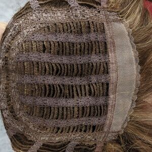 So, the best I can say is the pictures will have to do... it's a pretty, medium curl, brown highlighted wig by Paula Young!