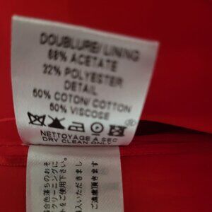 Stays in bodice. Back vent. Grosgrain ribbon tie at waist