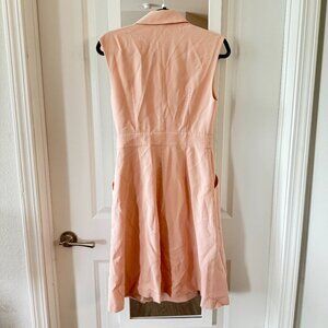 light pink V-neck notched lapels sleeveless wrap design A-line pleat detailing thigh-length