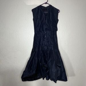 Pauline Trigere Black Drop Waist Button Front Bow Dress Women’s S PLS READ