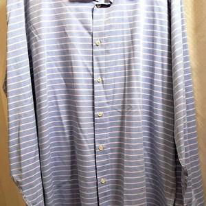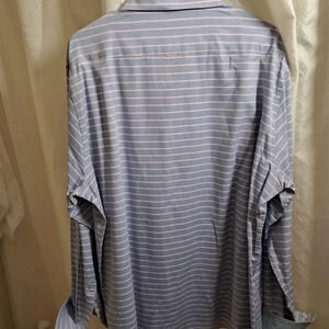2XL MEN'S BUTTON DOWN BLUE WITH PINK STRIPES COTTON BLEND LIGHTWEIGHT SPRING SUMMER PREPPY RESORT VACATION BEACH COUNTRY CLUB REHEARSAL DINNER