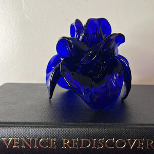 Pauly & Co RARE Pauly Venezia Cobalt Blue Glass Rose Taper Candle Holder