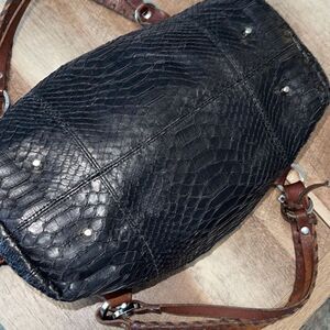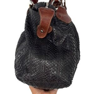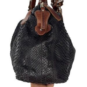 Pauric Sweeney Womens Leather Phyton Braided Shoulder Bag Black Brown Medium