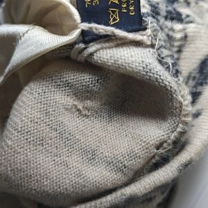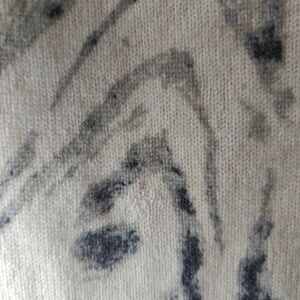 This skirt has a small hole at the waistband and repaired the send hole on the back left thigh area.