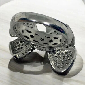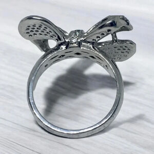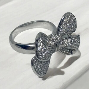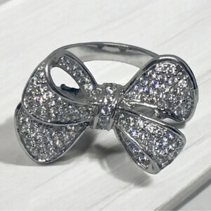 Pavè Rhinestone CZ Bow Silver Tone Ring Sz 6