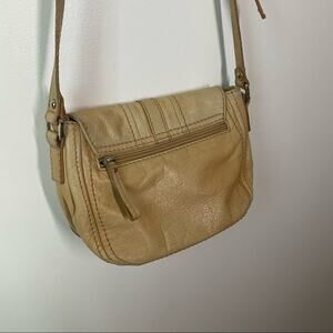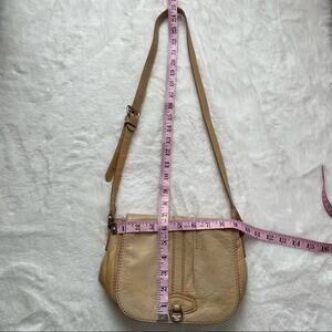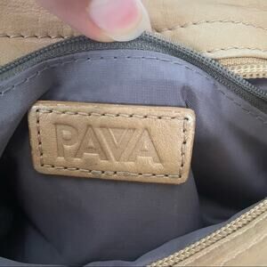 Genuine leather tan crossbody bag by Pava with adjustable strap. It’s in good condition with some minor signs of wear- some pen marks (shown in photos). Measurements included in photos.