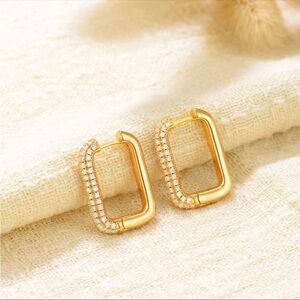 Pave CZ Crystal Oval Hoop Earrings 2023 style New Huggies Gold Plated