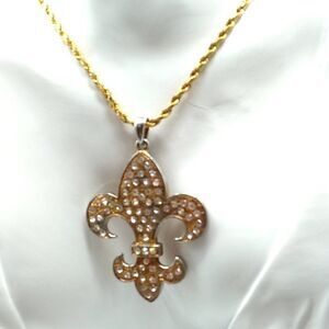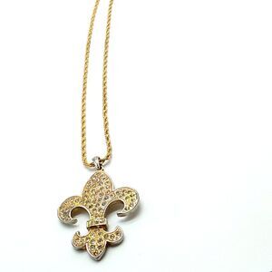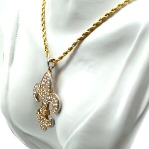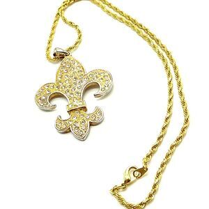 Pave Crystal Fleur de lis Gold-tone & Silver-tone Pendant Rope Chain Necklace