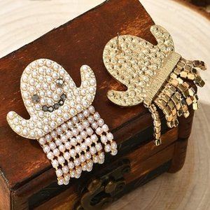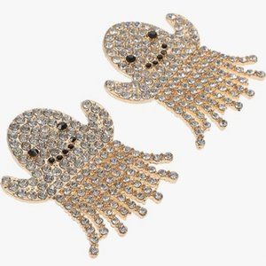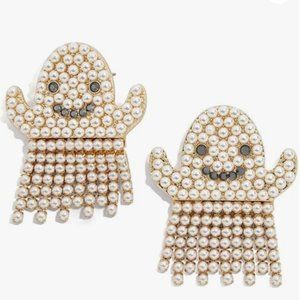 Pave Pearl Smiling Ghost Post Earrings Pearls Gold Happy Halloween Smile New