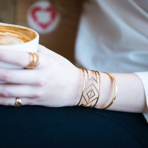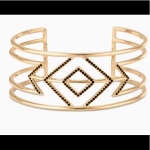 Geometric jet black pave contrasts with shiny gold to form this statement cuff.
