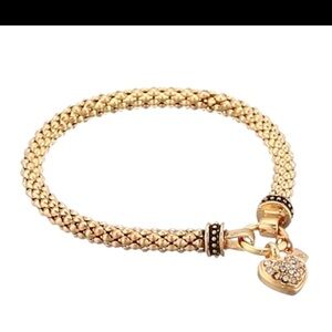 This stunning gold bracelet features a sparkling heart charm, perfect for adding a touch of elegance to any outfit. Ideal for any occasion.