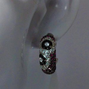 Earrings with omega backs set in sterling silver, with pave pink, blue and white CZs mimicking Le Vian® Bubble Gum Pink Sapphire™, Blueberry Sapphire™, Vanilla Diamonds® set in 18K Vanilla Gold®