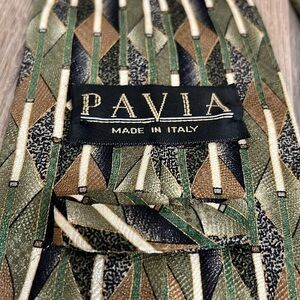 Pavia Tie - 100% Silk - Made in Italy Retro Design Green Tan Black