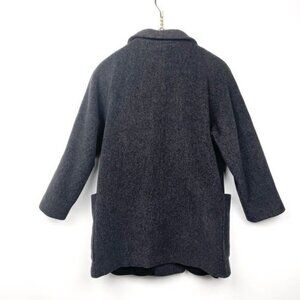 Made of 100% wool in a solid gray, this mid-length jacket features long sleeves and a button closure. With a relaxed fit and pockets for convenience, it's perfect for any occasion, whether it's travel, casual wear, work, or business. This jacket is a size 10 Although there’s no size on basing it on the measurements, so please see them below.