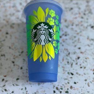 Perfect gift for the Pet owner in your life! This 24 oz Sunflower Paw Print Starbucks cup changes color when you add your favorite cold beverage.