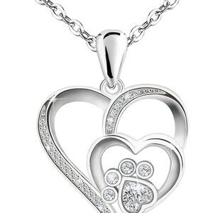 The sterling silver adjustable necklace is a combination of two love hearts and paw prints. The paw print inlaid with cubic zirconia is surrounded by two hearts of different sizes. The heart paw print necklace represents the love and miss between you and your pet. This is very suitable for people who like pets.