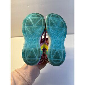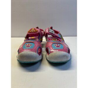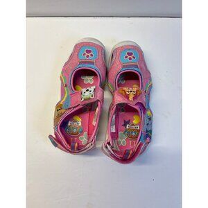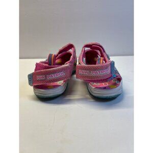 Paw patrol girls sandals, Disney brand size 11, vel-cro straps, pink, multicolor, cute blue sparkle bottoms. These have been hand washed and air. Dried Vel-cro is still strong. Minor signs of being previously worn no box sold as is.