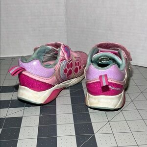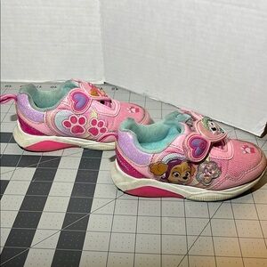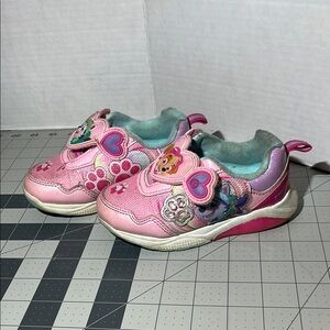 Charming pink sneakers with Paw Patrol characters. Heart accents add fun style.