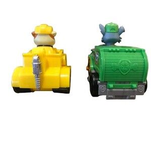 This listing is for a Paw Patrol Rocky w/ Garbage Truck and Rocky with bulldozer Spinmaster. Plastic.