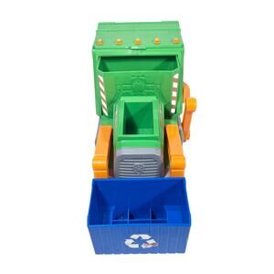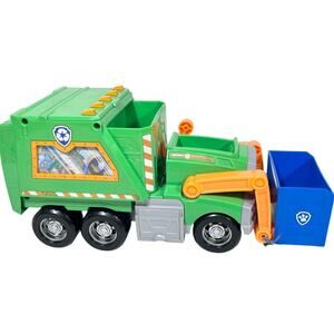 Introducing Paw Patrol Rocky's Reuse It Deluxe Garbage Recycle Trash Truck, featuring sound and light functions. Used in good condition with minor signs of play.