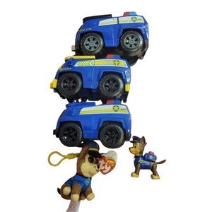 Paw Patrol Chase bundle. 2 spy cruiser vehicles. 1 action figure and 1 Ty beanie key chain. EUC. 17oz