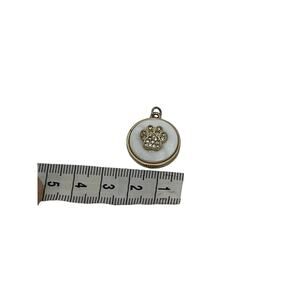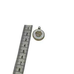 This paw print pendant features a decorative design with a jeweled accent. The pendant appears to be in good condition, with some slight signs of wear from use.