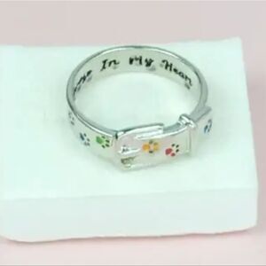 Paw Print SILVER TONE KEY Charm And RING Sz 7