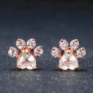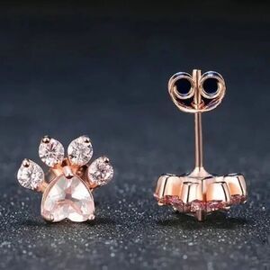 Paw Print Stud Earrings Pink Zircon Rose Gold Tone, NWOT