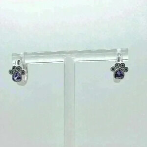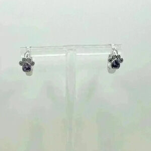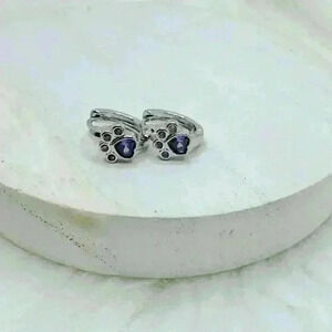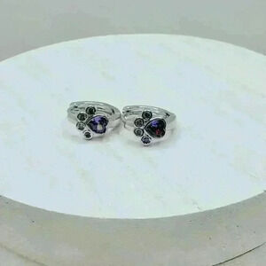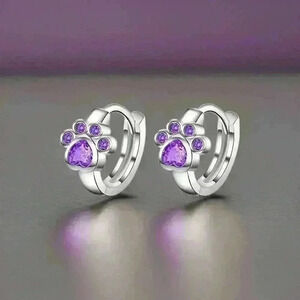 These Paw Print Zircon Hoop Earrings in Purple feature a petite size of 1.3 cm