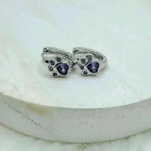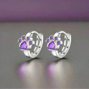 These Paw Print Zircon Hoop Earrings in Purple feature a petite size of 1.3 cm
