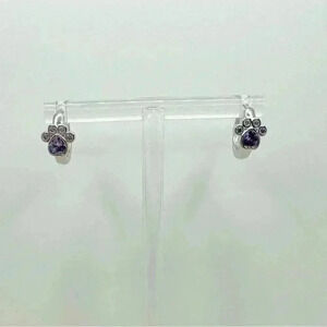 Paw Print Zircon Hoop Earrings in Purple