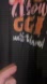 Black tee featuring a colorful 'Boots or Bows' graphic with pink, blue, and brown accents for cowboy or cowgirl “boots or bows” gender reveal party. I spent about $15 making each shirt & I just want some of my money back since the theme has changed!