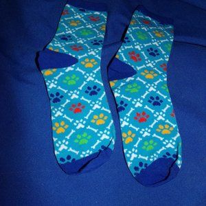 Pawprint & Bones Ankle Socks - Girls or Boys - Blue Multicolor Design