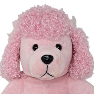 Adorable and charming, this Pawsenclaws pink poodle plush is perfect for dog lovers, plush collectors, or anyone who adores cute, cuddly companions. With curly textured fur, smooth plush accents, and sweet pink bows on her ears, she's made to stand out. A hidden zipper compartment adds a fun surprise, making her both collectible and functional.
