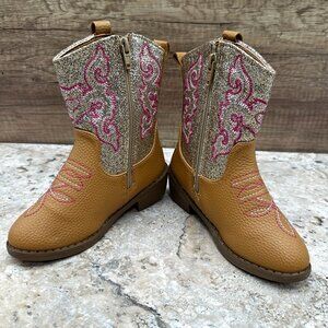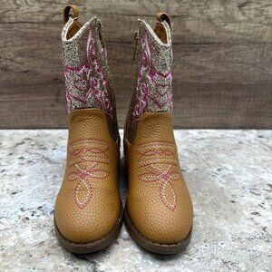 Pawz Little Girl Western Cowgirls Boots Size 11 Tan Silver Glitter Zip UP