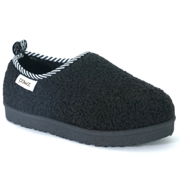 Cozy navy slipper shoes with striped trim. Perfect for casual wear. Watch your child go! Have them dress in style and comfort with Pawz Cozy Slippers Perfect for cold weather, these slippers feature a comfy and cozy lining that ensures their feet stay comfortable, on the chilliest of days. With durable outsoles for both indoor and outdoor wear. these slippers can be their go-to for effortless stvle around the house or out and about.